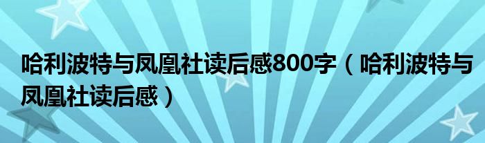 关于哈利波特与凤凰社读后感800字,哈利波特与凤凰社读后感这个很多人还不知道,今天菲菲来为大家解答以上的问题,现在让我们一起来看看吧!