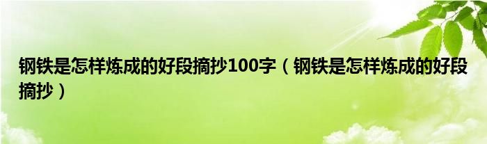 关于钢铁是怎样炼成的好段摘抄100字,钢铁是怎样炼成的好段摘抄这个很多人还不知道,今天菲菲来为大家解答以上的问题,现在让我们一起来看看吧!