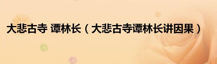 关于大悲古寺 谭林长,大悲古寺谭林长讲因果这个很多人还不知道,今天菲菲来为大家解答以上的问题,现在让我们一起来看看吧!