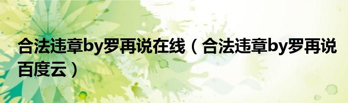 合法违章by罗再说在线(合法违章by罗再说百度云)