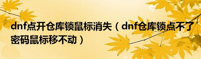 关于dnf点开仓库锁鼠标消失,dnf仓库锁点不了密码鼠标移不动这个很多人还不知道,今天菲菲来为大家解答以上的问题,现在让我们一起来看看吧!