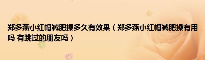 关于郑多燕小红帽减肥操多久有效果,郑多燕小红帽减肥操有用吗 有跳过的朋友吗这个很多人还不知道,今天菲菲来为大家解答以上的问题,现在让我们一起来看看吧!