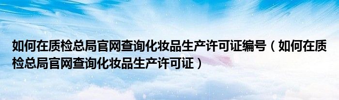 关于如何在质检总局官网查询化妆品生产许可证编号,如何在质检总局官网查询化妆品生产许可证这个很多人还不知道,今天菲菲来为大家解答以上的问题,现在让我们一起来看看吧!