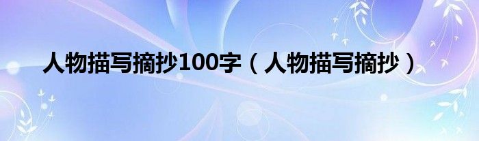 关于人物描写摘抄100字,人物描写摘抄这个很多人还不知道,今天菲菲来为大家解答以上的问题,现在让我们一起来看看吧!