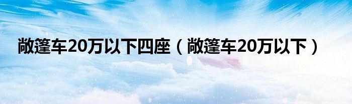 关于敞篷车20万以下四座,敞篷车20万以下这个很多人还不知道,今天菲菲来为大家解答以上的问题,现在让我们一起来看看吧!