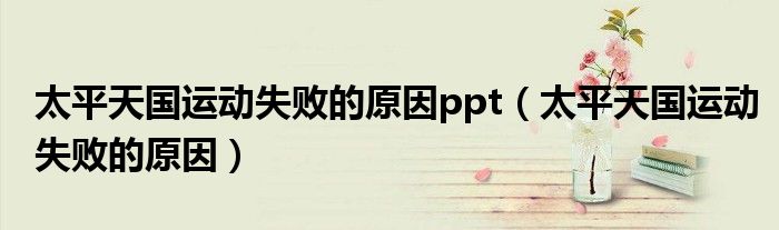 关于太平天国运动失败的原因ppt,太平天国运动失败的原因这个很多人还不知道,今天菲菲来为大家解答以上的问题,现在让我们一起来看看吧!