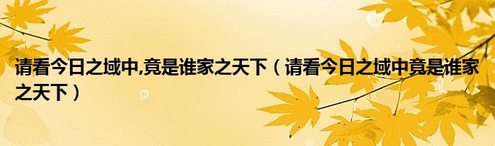 关于请看今日之域中,竟是谁家之天下,请看今日之域中竟是谁家之天下这个很多人还不知道,今天菲菲来为大家解答以上的问题,现在让我们一起来看看吧!