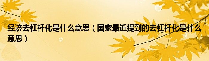 关于经济去杠杆化是什么意思,国家最近提到的去杠杆化是什么意思这个很多人还不知道,今天菲菲来为大家解答以上的问题,现在让我们一起来看看吧!