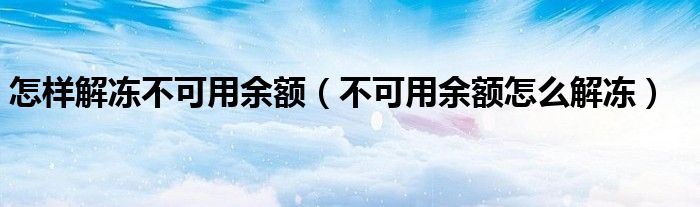 大家好,小晋来为大家解答以下问题,关于怎样解冻不可用余额,不可用余额怎么解冻很多人还不知道,今天让我们一起来看看吧!