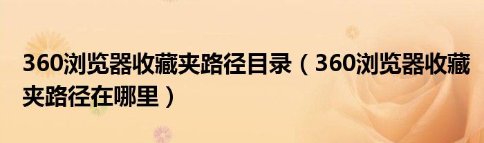 关于360浏览器收藏夹路径目录,360浏览器收藏夹路径在哪里这个很多人还不知道,今天菲菲来为大家解答以上的问题,现在让我们一起来看看吧!
