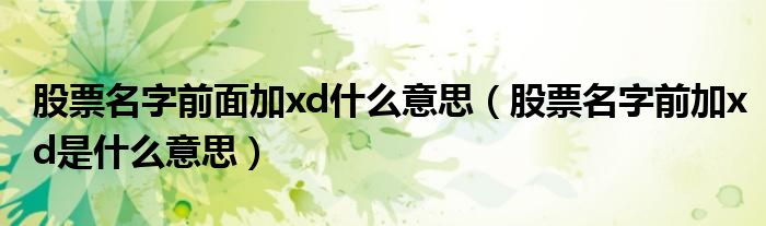 关于股票名字前面加xd什么意思,股票名字前加xd是什么意思这个很多人还不知道,今天菲菲来为大家解答以上的问题,现在让我们一起来看看吧!