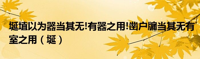 关于埏埴以为器当其无!有器之用!凿户牖当其无有室之用,埏这个很多人还不知道,今天菲菲来为大家解答以上的问题,现在让我们一起来看看吧!