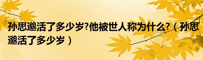 关于孙思邈活了多少岁?他被世人称为什么?,孙思邈活了多少岁这个很多人还不知道,今天菲菲来为大家解答以上的问题,现在让我们一起来看看吧!