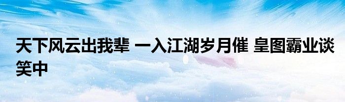 关于天下风云出我辈 一入江湖岁月催 皇图霸业谈笑中这个很多人还不知道,今天菲菲来为大家解答以上的问题,现在让我们一起来看看吧!
