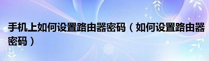 关于手机上如何设置路由器密码,如何设置路由器密码这个很多人还不知道,今天菲菲来为大家解答以上的问题,现在让我们一起来看看吧!