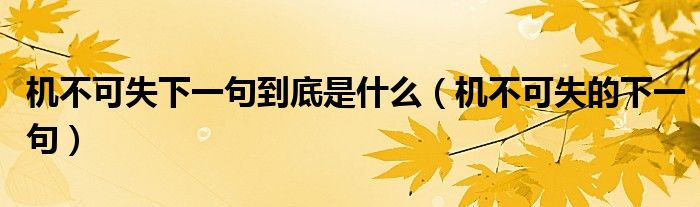 关于机不可失下一句到底是什么,机不可失的下一句这个很多人还不知道,今天菲菲来为大家解答以上的问题,现在让我们一起来看看吧!