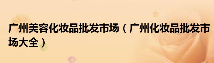 关于广州美容化妆品批发市场,广州化妆品批发市场大全这个很多人还不知道,今天菲菲来为大家解答以上的问题,现在让我们一起来看看吧!