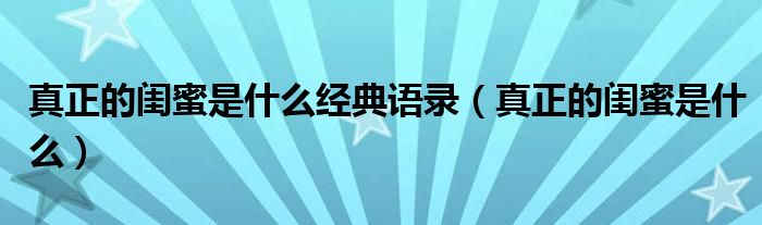 关于真正的闺蜜是什么经典语录,真正的闺蜜是什么这个很多人还不知道,今天菲菲来为大家解答以上的问题,现在让我们一起来看看吧!