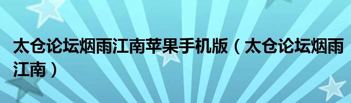 关于太仓论坛烟雨江南苹果手机版,太仓论坛烟雨江南这个很多人还不知道,今天菲菲来为大家解答以上的问题,现在让我们一起来看看吧!