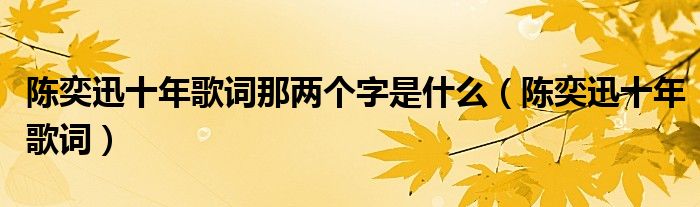 关于陈奕迅十年歌词那两个字是什么,陈奕迅十年歌词这个很多人还不知道,今天菲菲来为大家解答以上的问题,现在让我们一起来看看吧!