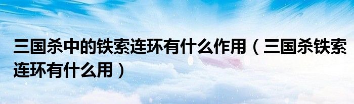 关于三国杀中的铁索连环有什么作用,三国杀铁索连环有什么用这个很多人还不知道,今天菲菲来为大家解答以上的问题,现在让我们一起来看看吧!