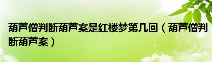关于葫芦僧判断葫芦案是红楼梦第几回,葫芦僧判断葫芦案这个很多人还不知道,今天菲菲来为大家解答以上的问题,现在让我们一起来看看吧!