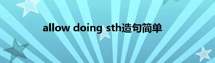 关于allow doing sth造句简单这个很多人还不知道,今天菲菲来为大家解答以上的问题,现在让我们一起来看看吧!