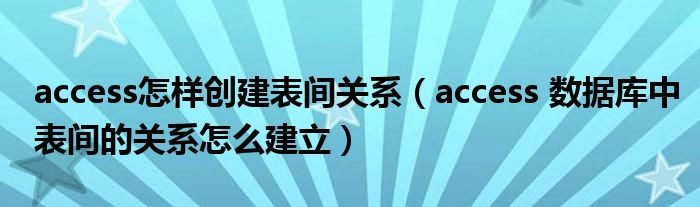 关于access怎样创建表间关系,access 数据库中表间的关系怎么建立这个很多人还不知道,今天菲菲来为大家解答以上的问题,现在让我们一起来看看吧!