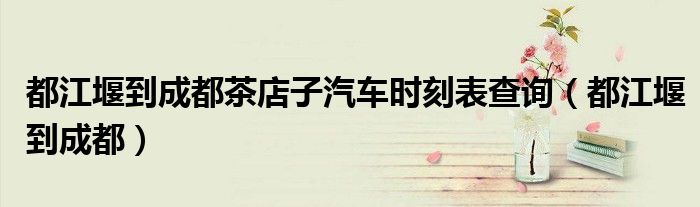 关于都江堰到成都茶店子汽车时刻表查询,都江堰到成都这个很多人还不知道,今天菲菲来为大家解答以上的问题,现在让我们一起来看看吧!