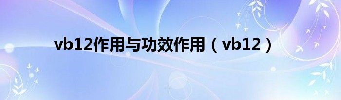 关于vb12作用与功效作用,vb12这个很多人还不知道,今天菲菲来为大家解答以上的问题,现在让我们一起来看看吧!