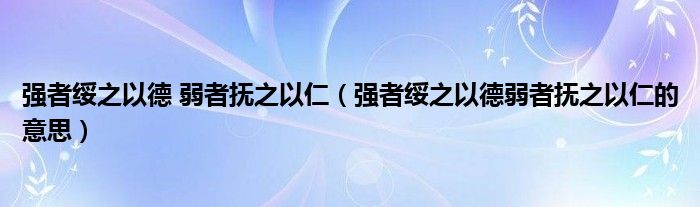 强者绥之以德 弱者抚之以仁(强者绥之以德弱者抚之以仁的意思)