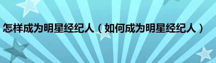 怎样成为明星经纪人(如何成为明星经纪人)
