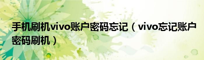 手机刷机vivo账户密码忘记(vivo忘记账户密码刷机)