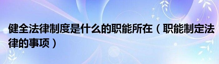 关于健全法律制度是什么的职能所在,职能制定法律的事项这个很多人还不知道,今天菲菲来为大家解答以上的问题,现在让我们一起来看看吧!