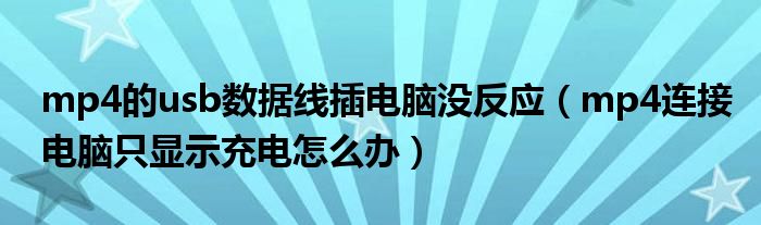 关于mp4的usb数据线插电脑没反应,mp4连接电脑只显示充电怎么办这个很多人还不知道,今天菲菲来为大家解答以上的问题,现在让我们一起来看看吧!