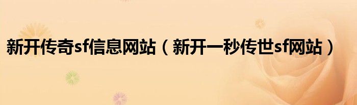 关于新开传奇sf信息网站,新开一秒传世sf网站这个很多人还不知道,今天菲菲来为大家解答以上的问题,现在让我们一起来看看吧!