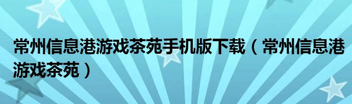 关于常州信息港游戏茶苑手机版下载,常州信息港游戏茶苑这个很多人还不知道,今天菲菲来为大家解答以上的问题,现在让我们一起来看看吧!