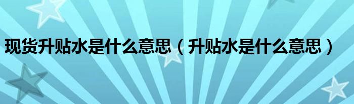 关于现货升贴水是什么意思,升贴水是什么意思这个很多人还不知道,今天菲菲来为大家解答以上的问题,现在让我们一起来看看吧!