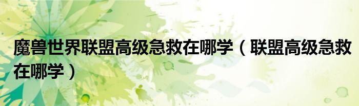 关于魔兽世界联盟高级急救在哪学,联盟高级急救在哪学这个很多人还不知道,今天菲菲来为大家解答以上的问题,现在让我们一起来看看吧!
