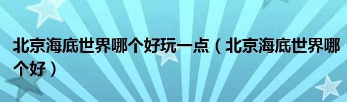 关于北京海底世界哪个好玩一点,北京海底世界哪个好这个很多人还不知道,今天菲菲来为大家解答以上的问题,现在让我们一起来看看吧!