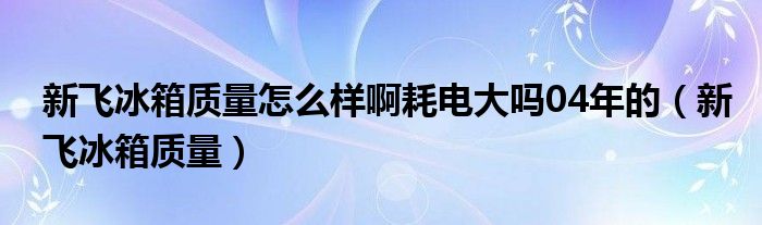 大家好,来宝来为大家解答以下问题,新飞冰箱质量怎么样啊耗电大吗04年的,新飞冰箱质量很多人还不知道,今天让我们一起来看看吧!