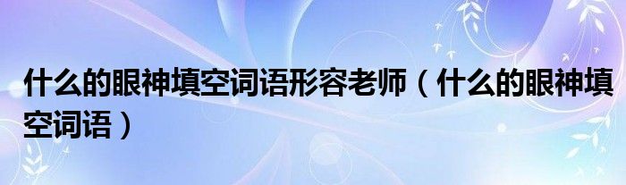 大家好,小晋来为大家解答以下问题,关于什么的眼神填空词语形容老师,什么的眼神填空词语很多人还不知道,今天让我们一起来看看吧!