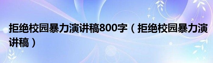 关于拒绝校园暴力演讲稿800字,拒绝校园暴力演讲稿这个很多人还不知道,今天菲菲来为大家解答以上的问题,现在让我们一起来看看吧!