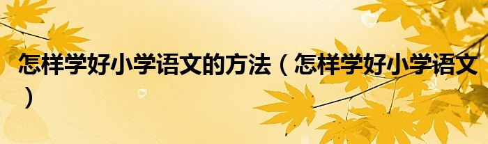 怎样学好小学语文的方法(怎样学好小学语文)