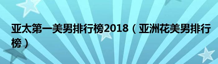 关于亚太第一美男排行榜2018,亚洲花美男排行榜这个很多人还不知道,今天菲菲来为大家解答以上的问题,现在让我们一起来看看吧!