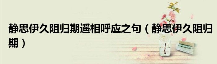 关于静思伊久阻归期遥相呼应之句,静思伊久阻归期这个很多人还不知道,今天菲菲来为大家解答以上的问题,现在让我们一起来看看吧!