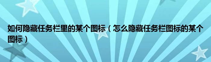 关于如何隐藏任务栏里的某个图标,怎么隐藏任务栏图标的某个图标这个很多人还不知道,今天菲菲来为大家解答以上的问题,现在让我们一起来看看吧!