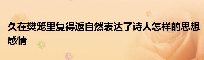 关于久在樊笼里复得返自然表达了诗人怎样的思想感情这个很多人还不知道,今天菲菲来为大家解答以上的问题,现在让我们一起来看看吧!