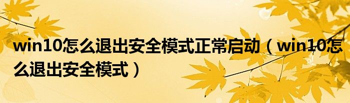 大家好,小晋来为大家解答以下问题,关于win10怎么退出安全模式正常启动,win10怎么退出安全模式很多人还不知道,今天让我们一起来看看吧!