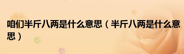 关于咱们半斤八两是什么意思,半斤八两是什么意思这个很多人还不知道,今天菲菲来为大家解答以上的问题,现在让我们一起来看看吧!